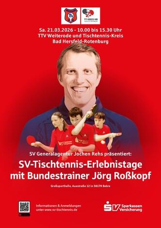 Sa. 21.03.2026 - 10.00 bis 15.30 Uhr TTV Weiterode und Tischtennis-Kreis H/R
