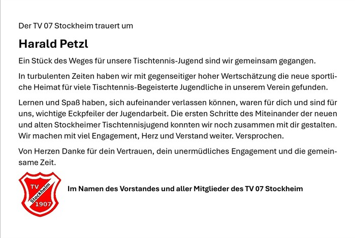 Dein Engagement, Dein Herzblut galt jedoch immer zuallererst den Kindern und Jugendlichen. Für sie hast Du gekämpft. Für Klartext und Machen warst Du bei Eltern, Funktionären bekannt. Die Kinder und Jugendlichen haben Dich nicht nur als Trainer, vielmehr als Mentor und Freund erlebt. Sie haben von Dir neben den Feinheiten des Tischtennis, auch Werte wie Teamgeist, Ausdauer, gegenseitige Unterstützung und Fairness nicht nur gelernt. sondern gelebt.