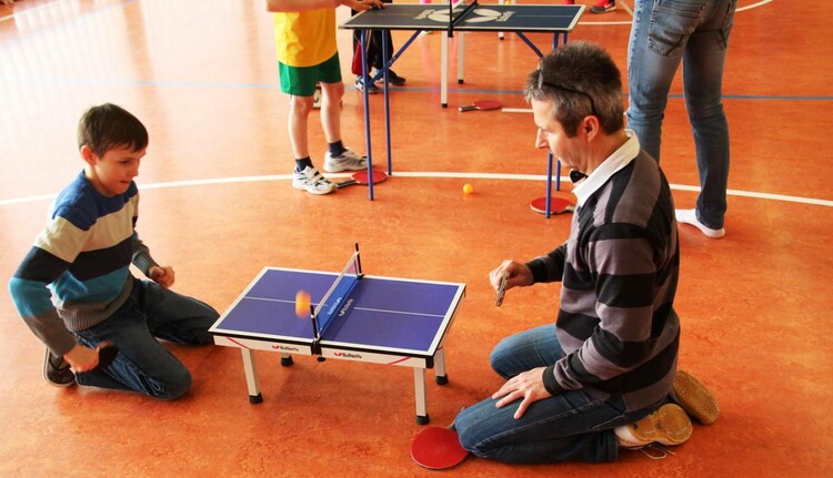 (sf). Für die Kinder der dritten und vierten Klassen der Grundschule Steindorf-Albshausen fing die Woche mit einer schönen Überraschung an. Die Tischtennis-Abteilung des TSV Albshausen hatte sich im Rahmen einer Schulaktionswoche des Tischtennis Kreisverbandes erfolgreich um einen Besuch des Schnuppermobils, einem Auto voll mit Tischtennis, beworben und am Montag war es dann so weit, dass ein ganzes Spaßpaket zum Tischtennissport in der Turnhalle aufgebaut worden war. Tische, Schläger und Bälle in allen Größen und Formen und sogar ein Tischtennisroboter standen für alle Kinder unter Anleitung von Alexander Murek vom Deutschen Tischtennisbund und der Mithilfe von Mareike Herbort, der Mädchentrainerin und Richard Cossmann, dem Jugendleiter der TT-Abteilung des TSV zum Ausprobieren bereit. Nacheinander gab es für alle vier Klassen je 45 Minuten voller Eifer, Spaß und Anstrengung. Der Schulleiter, Rektor Roland Schäfer, und die begleitenden Lehrkräfte der gastgebenden Schule machten selber mit und freuten sich über die Begeisterung der Mädchen und Jungen, von denen etliche versprachen, bereits am nächsten Trainingstag des TSV zur Karl-Theiß-Halle nach Albshausen zu kommen. Diese Aktion war nach der Meinung aller Beteiligten ein gelungenes Beispiel für die Zusammenarbeit Schule - Verein.