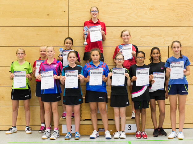 Bei den Mädchen trat Vicky Jöckel (TTG Vogelsberg) die Nachfolge von Sophia Klee (SC Niestetal) an. Vicky Jöckel blieb in der Vorrunde ohne Satzverlust und war auch in der Endrunde nicht zu bezwingen. Damit gelang ihr nach Platz vier in der vorigen Saison diesmal der Gesamtsieg. Nur gegen die Siegerin verlor Ayumu Tsutsui (TTC RW Biebrich), als sie ein 9:11, 7:11 und 5:11 kassierte und Zweite wurde.