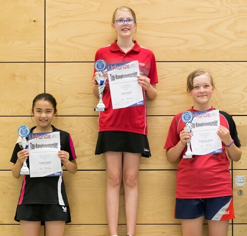 Gruppe 3: 1. Elisa Mest (TTG Vogelsberg 2015 e.V.) 18:2/6:0, 2. Anabel Beck (DJK SG Blau-Weiß Lahr) 15:6/5:1, 3. Dilber Polat (TSV 1875 Höchst) 15:10/4:2, 4. Carolin Obst (Turnerschaft 1860 Großauh) 10:10/3:3, 5. Brenda Rühmkorff (DJK-TTC Ober-Roden) 11:14/2:4, 6. Marleen Sievers (TTC RW 1921 Biebrich) 5:15/1:5, 7. Lisa Krebs (TSV 1924 Ernsthausen) 1:18/0:6.
