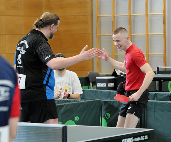 Nicht ganz so zufrieden war Serhii Kaminskyi (1. FC Niedernhausen-Lichtenberg). Sein Kommentar nach dem gewonnenen Match um Platz drei gegen Nico Walther (TV 1868 Bad Orb): „Schade, ich habe heute zwar nicht schlecht gespielt, aber ins Finale wollte ich eigentlich schon kommen.“ Dafür stand der Linkshänder aus der Ukraine im Doppel ganz oben auf dem Treppchen, das er an der Seite von Rolf Cezanne (TTC Ginsheim) erfolgreich bestritt.